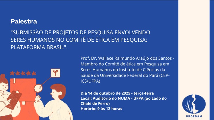 O Programa de Pós-Graduação em Gestão de Recursos Naturais e Desenvolvimento Local na Amazônia (PPGEDAM/UFPA) convida a comunidade acadêmica para a palestra “Submissão de Projetos...