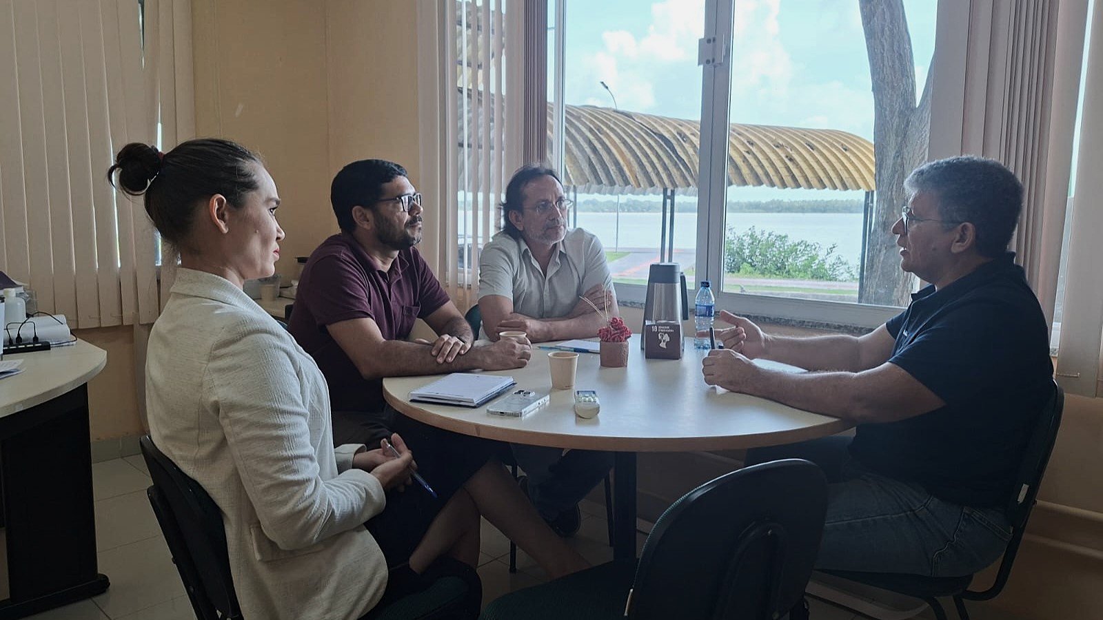 Foi realizada uma reunião institucional na sede do Núcleo de Meio Ambiente da UFPA, com o objetivo de estreitar as relações interinstitucionais e iniciar tratativas para a construção de um acordo de cooperação técnica entre a UFPA/NUMA e o Conselho Regional de Engenharia e Agronomia do Pará (CREA/PA) e a Mútua/PA. O encontro contou com a presença do Diretor em exercício da Unidade, Prof. Dr. André Luís Assunção de Farias, do Prof. Dr. Ronaldo Lopes Rodrigues Mendes, da assessora parlamentar do CREA/PA, Juliana Niederauer, e do Diretor-Geral da Mútua/PA, Josué Rocha, tendo ocorrido no dia 16 de dezembro de 2025.